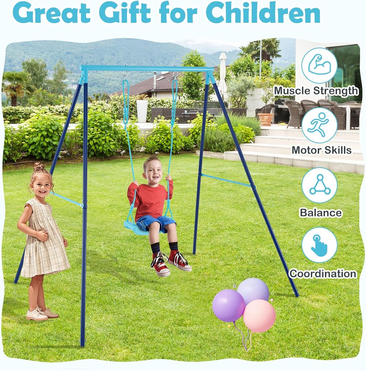 Swing set fun starts with this Costzon A-Frame Swing Stand, dedicated to enriching your child’s leisure time with outdoor play. The heavy-duty steel pipe frame provides excellent durability and features a stable A-frame design. This feature allows children to enjoy the outdoor sunshine and breathe fresh air safely, obtaining uninterrupted happiness. This versatile Swing set is the perfect gift for kids seeking outdoor entertainment.